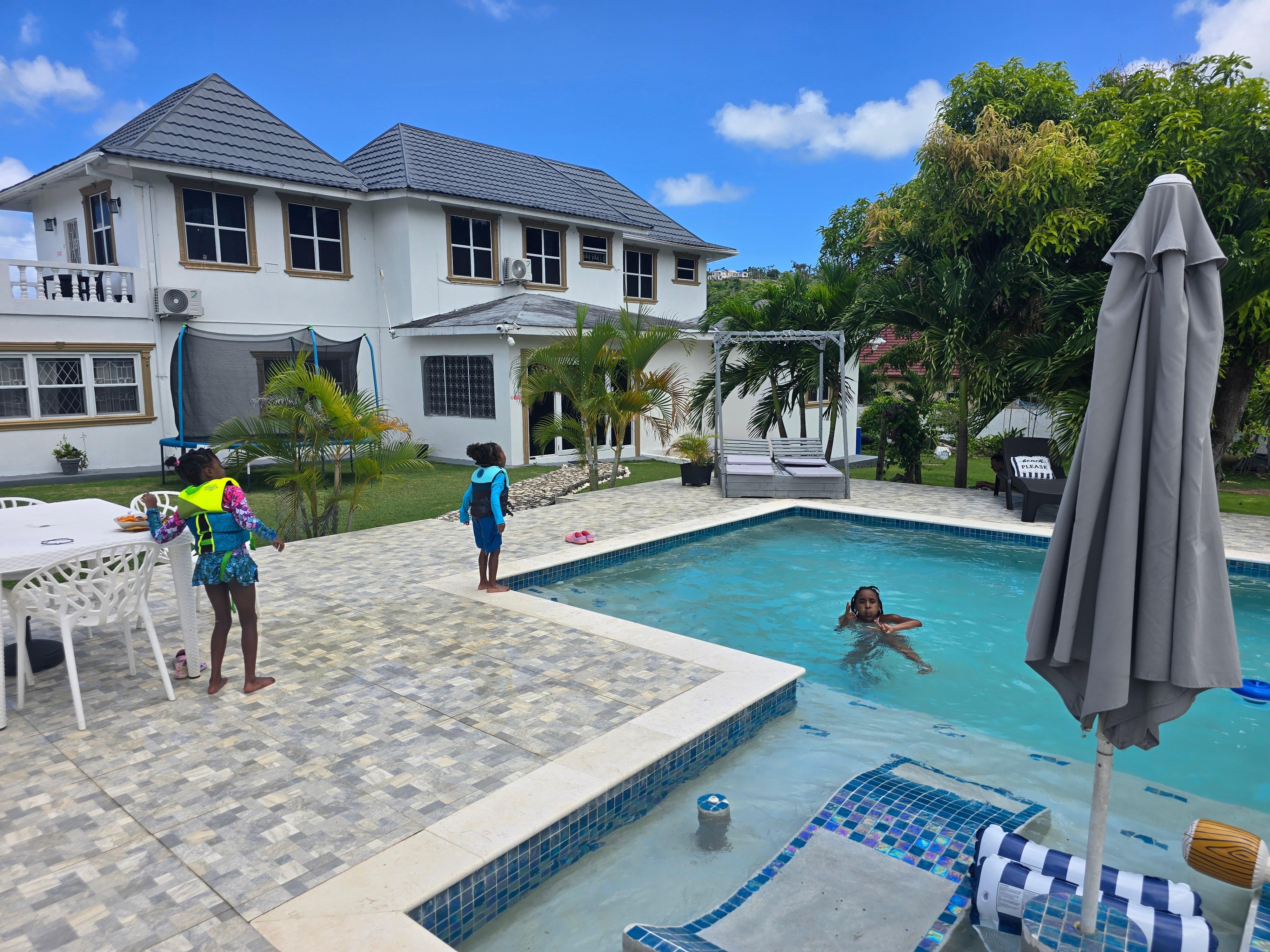 Myself and large family stayed here as a sorts of family reunion and used this home as our launching stop. We were most impressed by the outdoors area. The pool was really amazing and large and all around it it had great seating to sunbathe or have outdoor dining. The stereo also made it have a great vacation vibe. I appreciated the location because it the middle point between negril and kingston/portmore so it was a reasonable spot for daytrips to either side of the island. The host was very responsive.