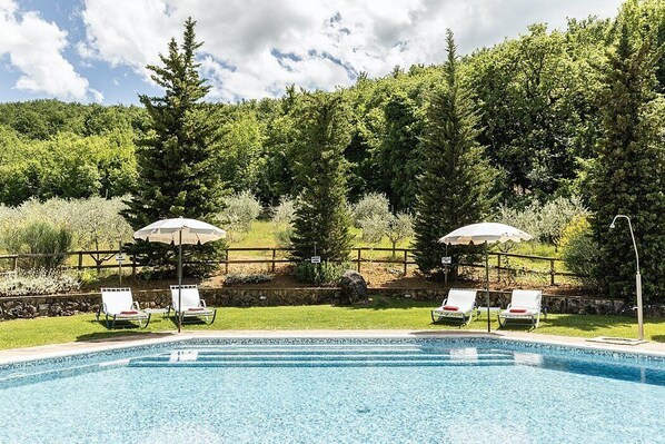 La piscina è larga 8 metri, lunga 16 metri, profonda 140 centimetri. L'area è attrezzata con ombrelloni, lettini prendisole e una doccia esterna, ed è in parte ombreggiata da alti alberi. Dalla piscina godrete di un'ammaliante vista del verde e del giardino. La piscina è aperta da metà maggio fino a fine settembre.