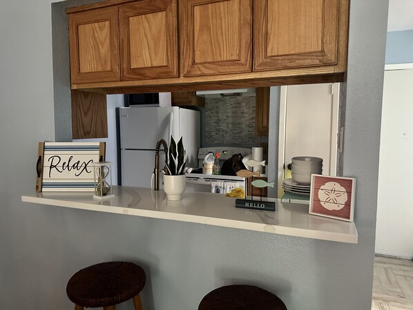 We arrived and did not have number of condo. Walked the complex til I found the lock box that worked the combo numbers given. When contacting host, they did not respond to text or call for a couple of hours. Place was great location and nice set up. There were some things missing usually found in a rental. No hairdryer but had a curing iron with a brush? No soap for shower. No utensils. We found one spoon in the dishwasher which it smelled so bad when opened it stunk the whole room. No sugar or sweetener or powder creamer for the unusual coffee products available. Once these few issues are addressed it will be a great place to stay.