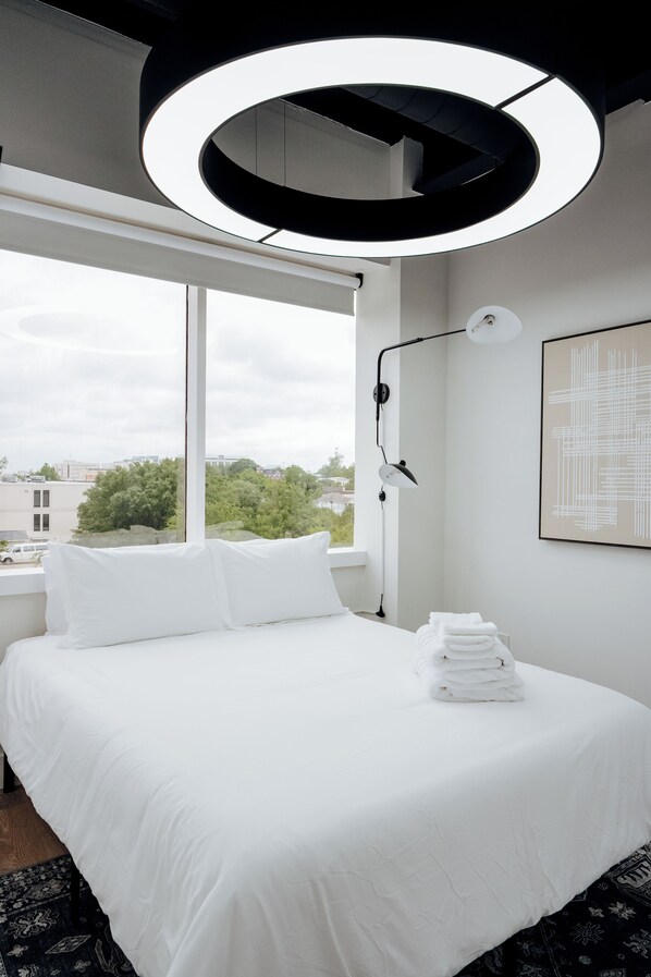 -King bedroom with hallway bath (tub/shower combo) -Queen bedroom with ensuite bath and downtown views -Smart TVs in both bedrooms and living room -Stainless steel appliances and granite countertops -Professional interior design throughout -Quick access to downtown Montgomery attractions