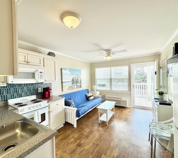 Our guests' safety and comfort are our number one priority and the space is professionally cleaned and thoroughly sanitized before your stay. There is no "shared air" as there is no enclosed lobby and the unit has an individual wall mounted a/c unit. This is a SMOKE-FREE Oceanside Complex. The aerial photo shows how close you will stay to the beach as well as the location of your space within the building.