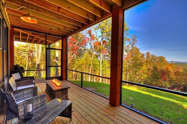 This exquisite mountain retreat is a diamond destination. Nestled in rolling summits, this home is serenity’s sanctuary. Lounge next to a deck wood burning fireplace. Savor crisp air as breathtaking mountain vistas stretch before you. “Rustic” describes its cozy charisma. “Elegance” conveys its decorative style and convenient modern comforts. “A Rustic Elegance” envelops you in luxury and soul-soothing scenery while emanating a tranquil vibe that resonates long after your difficult departure.