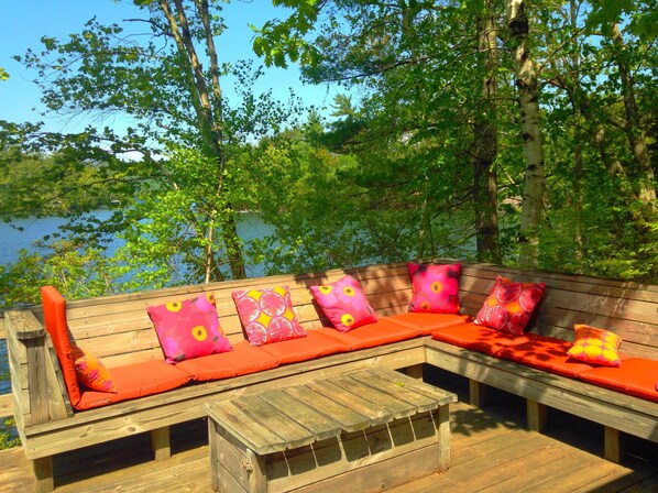 La casa ha qualcosa per tutti nel vostro gruppo. Che tu stia bevendo un caffè sul molo mentre la nebbia si alza dal lago, pranzando sui due tavoli da picnic sul ponte ombreggiato del lungolago, facendo una nuotata, giocando a tennis sul campo di argilla privata dell'har-tru, prendendo un pomeriggio pisolino sull'amaca sul lungolago, giocando a uno dei tanti giochi da tavolo o piscina con i bambini, seduto sul portico proiettato al tramonto, o raccogliendosi attorno al tavolo da gioco dopo cena, questo è il posto dove tu e la tua famiglia godrete un vacanza memorabile insieme.