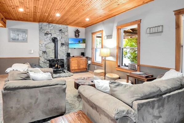 These open-concept living spaces allows you to easily transition from one activity to another. Brew a fresh cup of coffee and enjoy from the comfort of the many plush couches as you catch up with some screen time. Better yet, slip through the wide sliding doors and enjoy your first sip from the private balcony, overlooking the wonderful meadow!