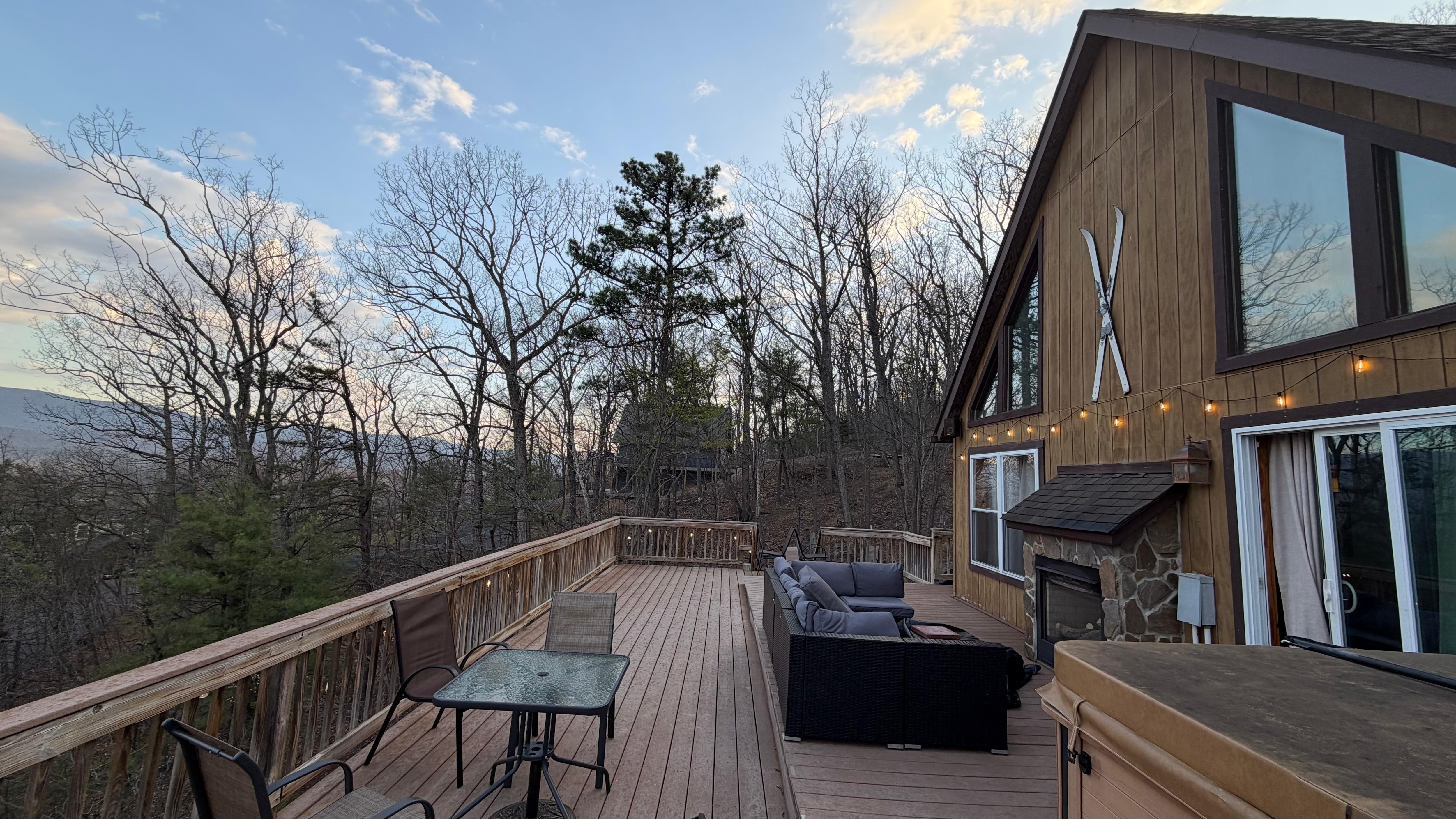 Loved it… amazing deck with a view and nice outdoor sitting area, with a fire pit, fireplace and plenty of chairs. Very clean house and very well equipped! Kids loved the projector downstairs and the ping pong table upstairs! Would definitely come back!
