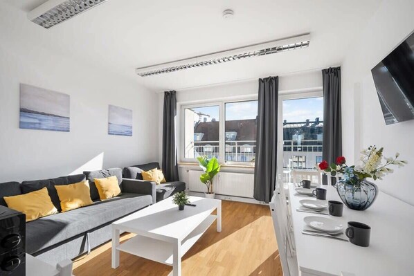 Welcome to your 110 m² retreat in Munich, designed for every traveler. Recently upgraded, this spacious apartment adapts to your needs.