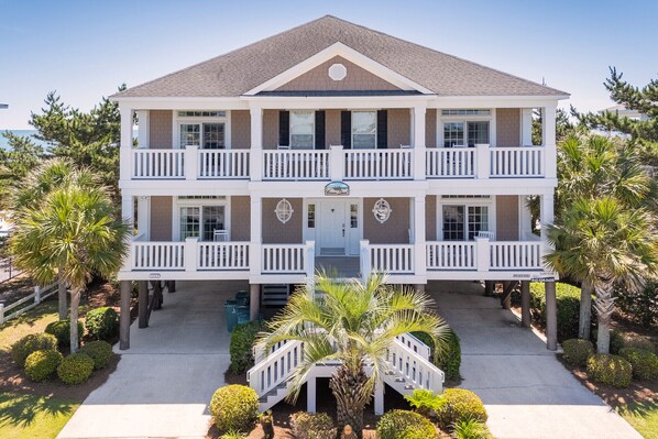 This stunning custom-built oceanfront home offers the perfect blend of luxury and comfort with 7 spacious bedrooms and 7.5 baths. Featuring a private pool with a wading area (36' x 17', 3' to 5' deep), you'll have the ultimate spot to relax and unwind. Enjoy the ocean views from the spacious covered porch on the first level or soak up the sun on the expansive sun deck on the second level. The street-side covered porches on both levels offer additional space for outdoor relaxation. A private walkway leads you straight to the beach, while the exterior shower adds convenience after a day in the sand and surf. Located just 4.6 miles south of Surfside Pier and 2.04 miles south of Garden City Pier, this home is ideal for those seeking an unforgettable beachfront retreat!