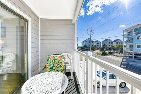 Sandy Shores II 109 is a two-bedroom, two-bath second row condo located 0.8 miles north of the Garden City Pier. This condo features a fully-equipped modern kitchen with dishwasher and microwave, private balcony, full-sized washer and dryer, central heat and air conditioning, and ceiling fans. Three TVs (cable, HBO, Showtime and Cinemax in living room), DVD player, stereo, and Wi-Fi are also provided. Sleeping accommodations include two queen and two twin-sized beds. Common area features a full-sized swimming pool, outdoor shower, and professionally landscaped grounds. This is an ocean view complex located across the street from the beach. Limit one parking pass per unit. Elevator. Trailers and golf carts are not permitted at this property. No smoking. No pets. Maximum occupancy: 6