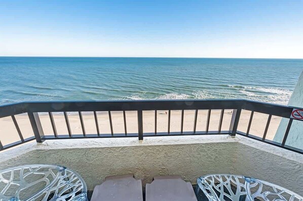 Our beachfront condo offers comfortable accommodations with 1 King Bed, 1 Sleeper Sofa, and 1 Murphy Bed, a private bathroom, and full-sized appliances. This beachfront condo comfortably sleeps 6 guests. Start your day with a breathtaking sunrise view from your private oceanfront balcony overlooking the beautiful ocean. The resort boasts numerous amenities, including a spacious kiddie fun activity pool area, 3 lazy rivers, 7 hot tubs, 2 outdoor pools, 1 indoor pool, and more! It's a fantastic unit in an outstanding resort!