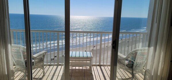 OCEANFRONT: Extremely well maintained, immaculately clean 3 Bedroom 2 bath-Non Smoking allowed condo, with huge full kitchen/eating area including bar seating and dinning table. Tile flooring throughout unit. Open living area with loads of seating so that you can relax and watch the Ocean, enjoy spending time with family and friends or watching the new 50" Roku TV. Plenty of room for the kids to place both inside and on the expansive balcony that is the full length of the Oceanfront.