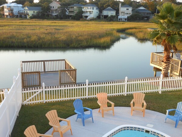 Trascorri le mattine a giocare sulla spiaggia e i tuoi pomeriggi in giro per la tua piscina privata con vista sulla palude di marea con garzette, falco pescatore e pellicani. Il tramonto sulla palude è mozzafiato. Se ti piacciono gli eventi più eccitanti, prova a fare il balenaggio, lo SHRIMPING o il FLOUNDER FISHING dal molo (chissà, potresti prenderti abbastanza per dare alla tua famiglia un'eccellente cena a base di pesce!) La vita è buona a Carolina Cottage e Hideaway!