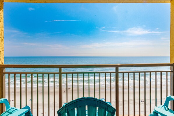 The convenience of an electronic, keyless entry makes check-in hassle-free! Once inside our condo, guests can also enjoy the balcony with direct oceanfront views. In addition, the outdoor pools and water features are just a short elevator ride down to the 1st floor! Our guests will also have access to basic resort cable and Wi-Fi.