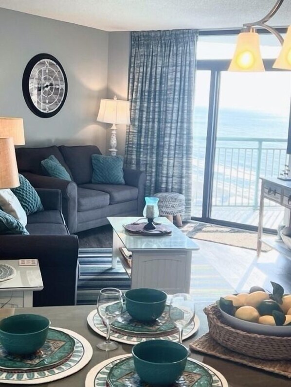 Questo resort si trova sulla spiaggia di Ocean Blvd. nella parte nord di Myrtle Beach conosciuta come "Golden Mile". Condo 1805 è una lussuosa camera con 3 camere da letto con vista sull'oceano situata al 18 ° piano con splendide viste sull'oceano e sulla costa settentrionale dal balcone a cui si accede sia dal soggiorno che dalla camera da letto principale. Il condominio è stato recentemente rinnovato nell'inverno 2018/19 con il nuovo pavimento in plancia di vinile ingegnerizzato Rocky Coast Pine, nuova lavatrice / asciugatrice, nuovi elettrodomestici in acciaio inossidabile, nuovi mobili da cucina con piano in granito, nuovi mobili da bagno e luci, nuovi portasciugamani, nuovi servizi igienici e nuove porte interne dappertutto. Basta aprire le porte scorrevoli in vetro, sedersi sul balcone e rilassarsi con le viste confortevoli del bellissimo mare. Può ospitare fino a 10 persone con un re nel master e 2 letti matrimoniali in ciascuna delle altre camere da letto. Tutti i letti sono nuovi di zecca a partire da luglio 2017.