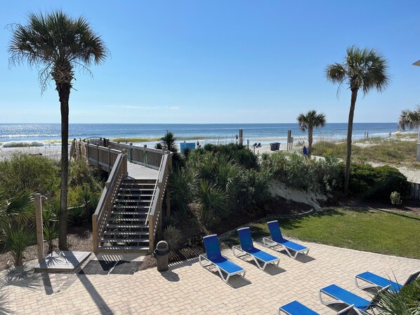 Condominio di fronte all'oceano con vista libera al primo piano. Area è una grande vacanza in famiglia con l'unità si trova in una strada senza uscita. L'unità è dipinta di fresco e decorata con un tema tropicale. Il soggiorno e tutte e tre le camere sono dotate di TV e lettore DVD. Proiettato in balcone fuori dal soggiorno e balcone al largo master suite privata sono arredate con tavoli e sedie per il tempo libero all'aperto. L'unità ha una lavatrice e asciugatrice full size e spazio per lo stoccaggio sotto il portico di entrata per gli attrezzi da spiaggia per la vostra convenienza.
