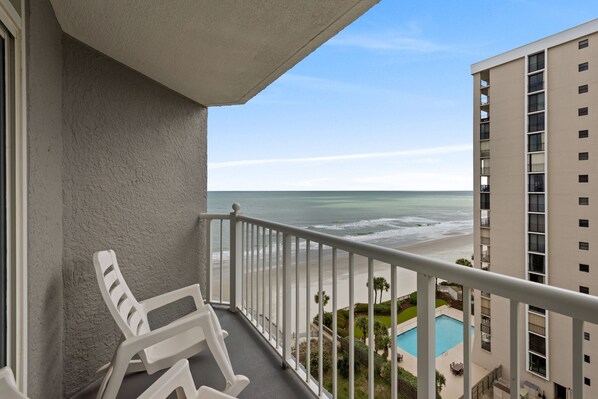 Questo condominio con 2 camere da letto e 2 bagni con vista sull'oceano ha tutti i mobili e gli elettrodomestici nuovi e può ospitare 8 con 1 letto king size, 2 letti matrimoniali e un divano letto.