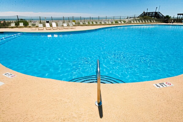 Ocean view studio with resort amenities, private balcony, beach access, & AC ha una piscina?