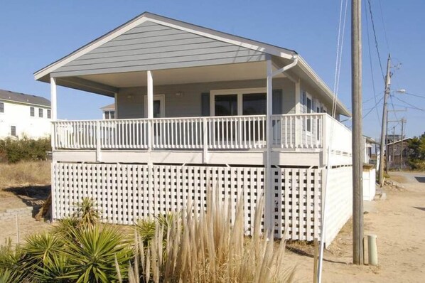 Colonel Bob’s is a nicely furnished, well-equipped 3 bedroom cottage ideal for a family wishing to be really close to the beach without those high oceanfront rates! South Nags Head is a great location for a true beach vacation! It is completely residential and quiet but many essential amenities are located only a mile north of at Whalebone Junction, including a fine small supermarket, a 7-11 store, a service station, several excellent restaurants and a wide variety of shops at the outlet mall. The spectacular new Jennette's Pier, North Carolina Aquarium is also only a mile north and the popular Outer Banks Fishing Pier a mile south. Bodie Island lighthouse, the Oregon Inlet Fishing Center, and the Cape Hatteras National Seashore are only minutes away. A short drive takes you to Roanoke Island and all its attractions including the N.C. Aquarium, Festival Park with its replica of the good ship Elizabeth II, the Lost Colony outdoor drama and Fort Raleigh National Historical Site. South Nags Head features a five mile long multi-purpose super-sidewalk where vacationers can bike, jog, or just walk safely away from traffic. Inside, you’ll find all stainless steel appliances in the kitchen and a comfortable living room. Outside you’ll find a totally private patio with a large hot tub where you can sit and relax or enjoy a cocktail while grilling some burgers. There is also a large covered porch to sit and chat or dive into a good book.