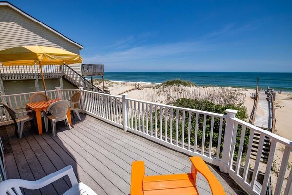 Avere una vacanza senza stress e facile a 'Footloose'! Goditi la tua piscina privata sul lungomare e le fantastiche viste dalla Great Room e dai ponti. Pavimenti in pino, granito, elettrodomestici in acciaio inossidabile e arredamento da spiaggia per il mare vi invitano a togliersi le scarpe e bagnarsi i piedi. Tutti possono rilassarsi nella piscina privata per i bambini grandi, e c'è anche una piscina per i bambini! Il tempo in spiaggia è facile con la tua passerella sulla spiaggia. La spaziosa Great Room regala viste panoramiche sulla spiaggia e sull'oceano. La tua famiglia amerà l'atmosfera e la sensazione di relax in tutta la proprietà mentre ti rilassi e ti leghi insieme in spiaggia. La cucina è ben arredata e piena di tutto il necessario per pianificare e preparare i pasti per la tua famiglia. Ti piace cucinare? Il tavolo da pic-nic lungo 10 'e l'ampia area barbecue rendono facile per tutta la famiglia godersi i capolavori alla griglia e fare picnic ogni sera! C'è anche un sacco di posti a sedere intorno alla piscina.