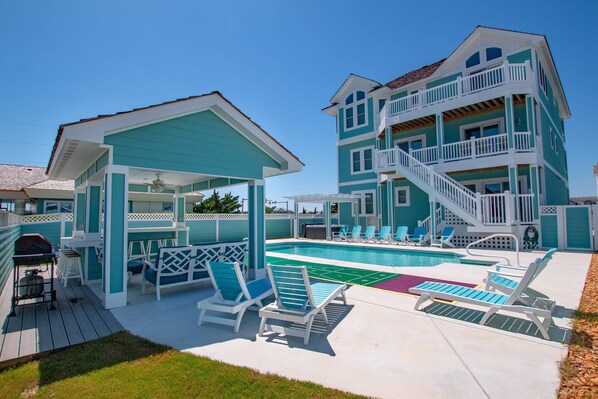 Benvenuti in un'esperienza di vacanza Outer Banks davvero impareggiabile ... benvenuti a casa in Tradewinds 2! Questa nuova costruzione, lussuosa casa sull'oceano, ti aspetta per le tue vacanze sulle Outer Banks. Situata nel cuore di Nags Head, nel nuovo sviluppo di Windward Cove, questa importante casa con 8 camere da letto e 8 bagni includerà tocchi di design, lussuosi servizi e comfort senza pari. Dagli ampi ponti prendisole (perfetti per viste e accessi incredibili), all'area piscina in stile resort (completa di vasca ht e TIKI BAR), alla SAUNA, ai materassi Kingsdown personalizzati, Tradewinds 2 ha tutto ciò che hai sempre desiderato ( e altro!) in una vacanza a Nags Head. Tutti i materassi Kingsdown fanno parte del sistema "Cool Wave" - dissipano il calore verticalmente e orizzontalmente per un sonno notturno più rigenerante. Ogni strato di questi letti Body System è progettato per massimizzare il comfort e fornire supporto laddove il tuo corpo "galleggia" al proprio livello di necessità; conformità corpo a corpo davvero impareggiabile! Amenità di lusso, tanto spazio per allungare e rilassare davvero e una breve passeggiata per la spiaggia ... Tradewinds 2 è perfetto per una vacanza in famiglia o in gruppo. Sii il primo a provare il lusso di Outer Banks al suo meglio. Distanza dalla spiaggia: circa 200 iarde.