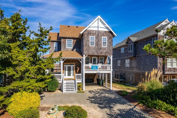 Queen Anne's Retreat: Oceanside home in Nags Head with ocean views, a private pool, gazebo, hot tub, rec room, and is just a quick walk to beach!