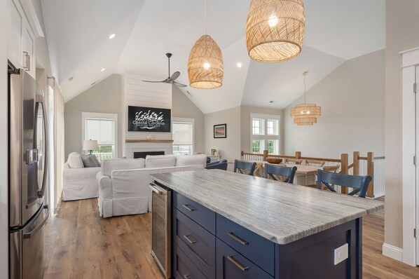 Built in 2023, Shelly Shores is the perfect golfer's paradise, nestled alongside the famous Nags Head Golf Links. Enjoy your morning coffee on the multi-level decks while gazing at the luscious greenery and the golf course and end your day with your favorite beverage watching the sunset over the sound. After a fun-filled day at the beach or playing golf relax in your own hot tub located on the mid-level deck. The top level is where you can host all of your entertainment. A roomy and cozy great room with a TV and comfy seating for watching movies or favorite sports shows. The chef in your group will love the upscale and well-stocked kitchen and the open dining area gives everyone a spot to gather for those delicious meals and to plan for the next day's adventures. Step outside and enjoy the spacious sun deck and screened porch and relax in the sun or shade. The mid-level is where you'll find most of the sleeping quarters with a king en suite, a queen, and a room with two double beds, and on the top level, the main king en suite will give everyone a place for a restful evening so you can be refreshed and ready for another fun day on the Outer Banks. Fire up the grill and throw some burgers on for lunch and after a day at the beach rinse off in the enclosed outdoor shower. Your family will think you scored a hole-in-one at Shelly Shores!