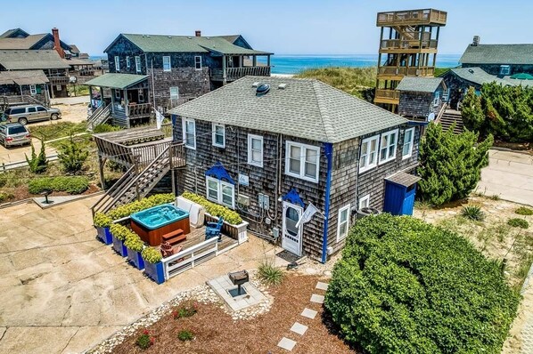 Gli ospiti attenti al budget che sono alla ricerca di un'esperienza unica saranno divertiti e grati per questo fronte semi-oceanico insolitamente decorato e situato in posizione fantastica situato tra Jockey's Ridge State Park e l'Oceano Atlantico! Al piano terra di un duplex di 2 unità, The Carriage House II Lower ha il suo mazzo privato e vasca idromassaggio! La posizione semi-oceanica significa un facile accesso alla spiaggia (nessuna strada da attraversare qui!) tramite gazebo condiviso e accesso alla spiaggia sul lungomare. Caratteristico e carino, questa casa vacanza storica conservata di 100 anni fa parte di una vera e propria proprietà di carrozza dei primi del 20 ° secolo, trasformata in due piccole unità che offrono un'ottima posizione e cucina completa per piccole famiglie e coppie che desiderano 'TINY PROPERTY, BIG VIVERE'. Divertente arredamento bovino con mucche divertenti, mucche premurose e mucche che saltano sulla luna. Vista di Jockey's Ridge dal tuo ponte privato al piano terra completo di vasca idromassaggio! Posizione centrale per passeggiate a piedi o in bicicletta per ristoranti, negozi, vita notturna, frutti di mare e mercato agricolo, e ovviamente Jockey's Ridge. Deltaplano, rotola giù per la grande duna con i bambini, vola un aquilone, esplora e divertiti.