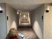 After several phone calls by the clerk he receive authorization to book me into room 164, a mobility accessible room which was over 160 yards from the front door and the handicap access ramp. (See attached photo).