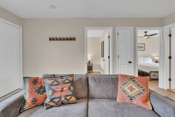 → There is no central air conditioning. Each rental has a window unit in the living room with ceiling fans in each bedroom. Our guests find air flow provides ample comfort when sleeping with all bedroom doors ajar.