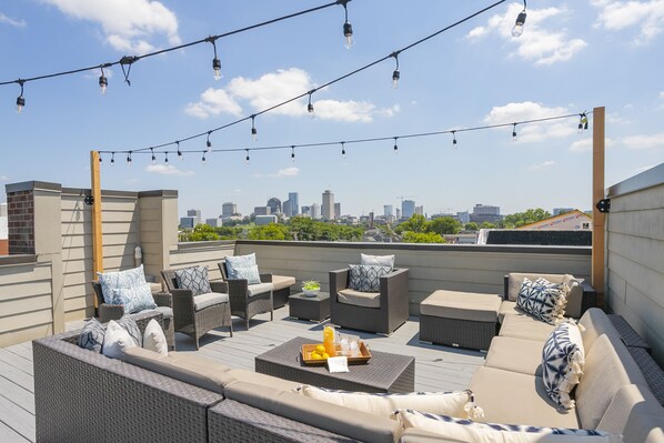 4 ° piano è la terrazza sul tetto / spazio di vita all'aperto con una vista incredibile ... E la nostra parte preferita della casa :)