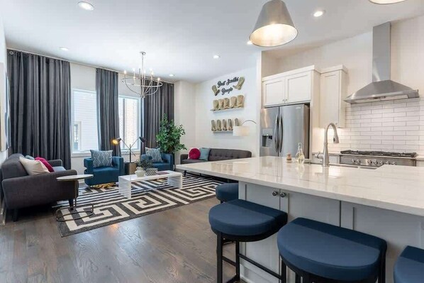 • Fully stocked kitchens w/ bar seating