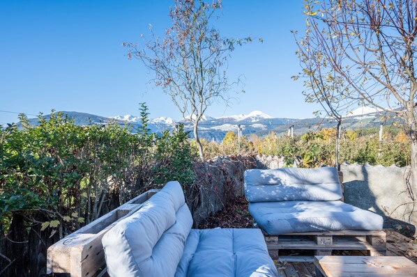 Dal balcone arredato dell'appartamento si può godere della vista delle montagne circostanti. Nell'area esterna condivisa, si dispone di una piscina coperta e un ampio giardino con posti a sedere, prato per prendere il sole, tavolo da ping-pong e trampolino. Qui potete fare il barbecue insieme ai vostri cari o rilassarvi con un buon libro mentre i bambini sguazzano in acqua e si divertono.