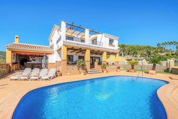 Mobility statement - This villa is in the mountains, within a hilly/mountainous area. To access the villa there is a path which is 95cm wide alongside 3 steps. The front door has a width of 80cm, whilst the door to the terrace is 95cm wide. The terrace is relatively flat and tiled. There are 3 steps down from the covered terrace to the poolside, and 1 step up to the BBQ area. There is also a small lip around the edge of the pool, whilst the pool itself has ladder access. There are no bedrooms or bathrooms on the ground floor. There's 17 steps to the first floor, where all bedroom doors are 70cm wide, and the bathroom doors are 60cm wide. The door to the kitchen/lounge is 140cm wide. *Please note that although every effort has been made to ensure the information provided is accurate, errors can occur and if you need to find out more specific information about the villa, please do not hesitate to contact us. Pets - not allowed Smoking - not allowed