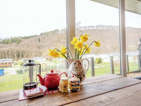 Shower Room: Cubicle Shower, Heated Towel Rail, Toilet. Electric central heating (by meter, £70 included). Electricity, bed linen and towels included. Welcome pack. . Front decking with garden furniture. Children’s play area. Hot tub for 4 (private). 2 small dogs welcome. Private parking for 1 car. No smoking or vaping.. Robin’s Nest is situated on Woodlands Lodge Retreat near New Quay, west Wales, overlooking the park and the children’s play area. The property has a lovely open-plan living space tastefully furnished with nature, environment and Welsh heritage in mind perfect for socialising whilst cooking up a storm in the kitchen. There is also a wrap-around decking and private hot tub, where you can sit and watch the sunset whilst listening to the local wildlife. Solar lights offer an extra twinkle whilst you sip your fizz. A welcome pack will be provided with locally produced sustainable Welsh goodies in!