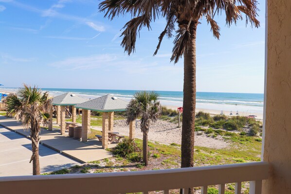 Beachfront Comfort w/ Pool, Patio & Steps to Flagler Avenue