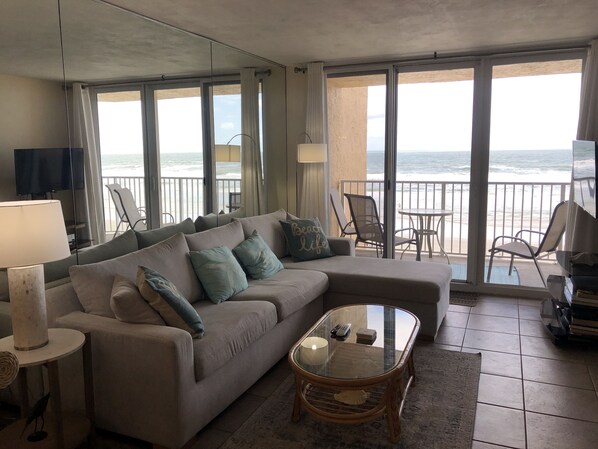 We had a great stay at this property. My husband and I brought his elderly dad who thoroughly enjoyed watching the ocean from the comfortable balcony. We walked on the beach and did some shore fishing and loved walking to Flagler Avenue for the restaurants and shopping. Driving on the beach was fun too! The condo is perfect: great kitchen with everything we needed, two bedrooms and two bathrooms that were comfortable and large, plenty of extra towels and blankets, and a lovely beachy themed living room with a dining area. We could see the ocean from everywhere. It was very clean, easy to check in with a code for the door. The instructions from Stephanie and Rich were excellent, especially as they emphasized the importance of making sure you get your parking pass right away before taking up your belongings. We appreciated knowing that. As well, they were very responsive when I had a couple of questions during the week before our visit. We would go back!