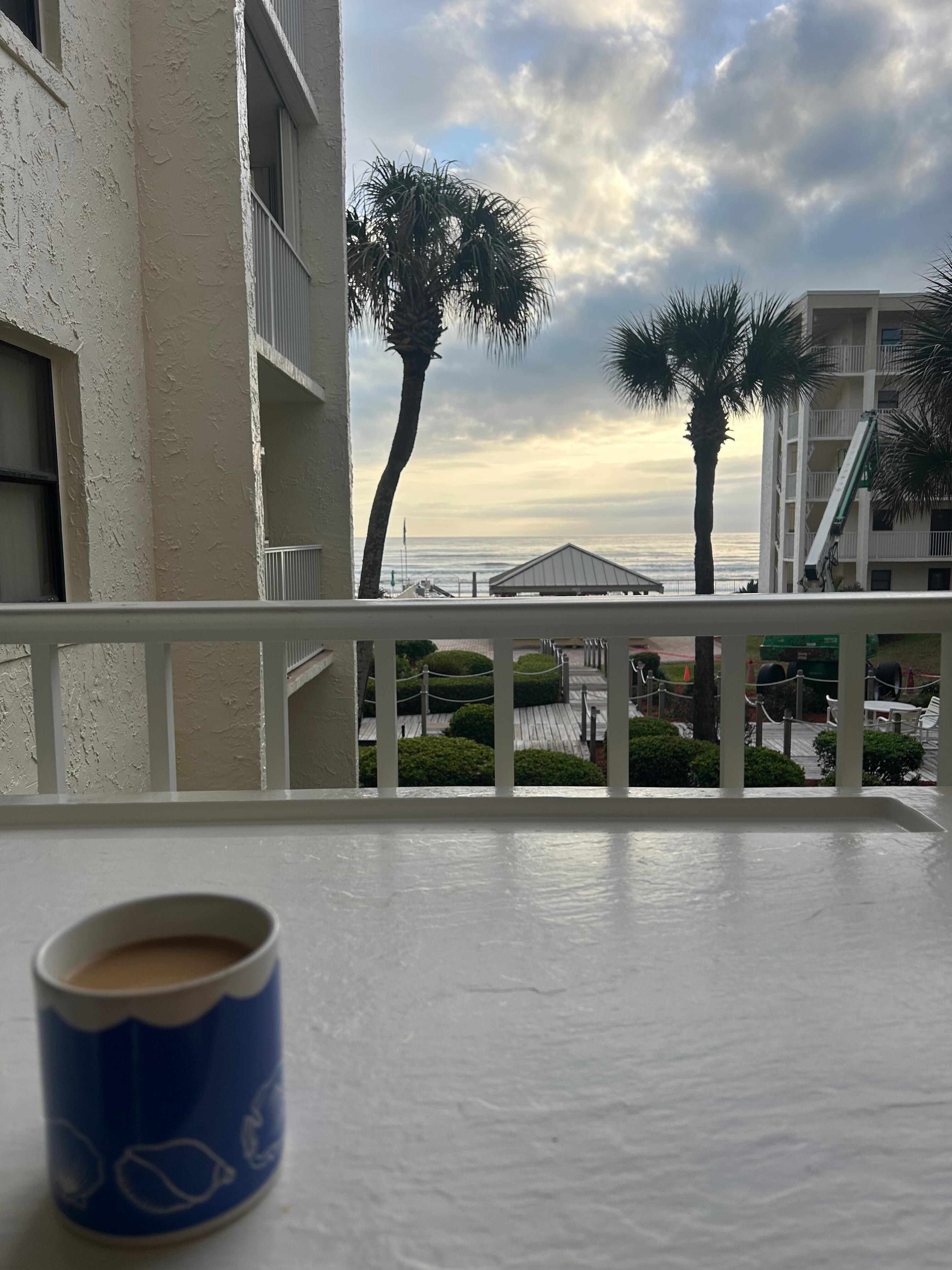 - Large balcony faces ocean directly and features bar height chairs and table - perfect for dining with a spectacular view, from sunrise coffee to sunset happy hour.