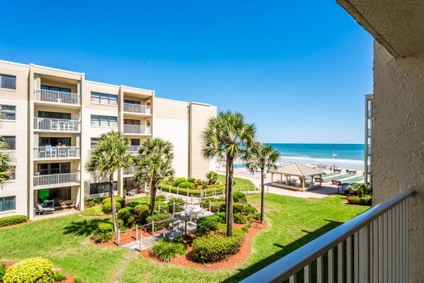 ~What else sets this unit apart? Lovely beach views from every window in our unit as well as an awesome location with the laundry and refuse room being located right across the hallway!