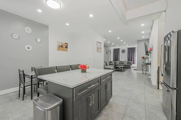 It is fully equipped with state-of-the-art cooking appliances that will quickly turn you into a Michelin star chef. The kitchen is suitable for preparing any meal, whether it is a simple breakfast, quick snack, or a three-course gourmet dinner. Spacious countertops provide plenty of room for you to work your MasterChef magic.
