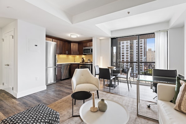 Pets are allowed in select apartments and are subject to a $500 non-refundable pet sanitation fee for one pet, $750 for two pets. Additional charges and size/breed restrictions may apply and vary by building. All pets must be approved by Furnished Quarters. Please let us know ahead of booking if you plan on traveling with a pet.