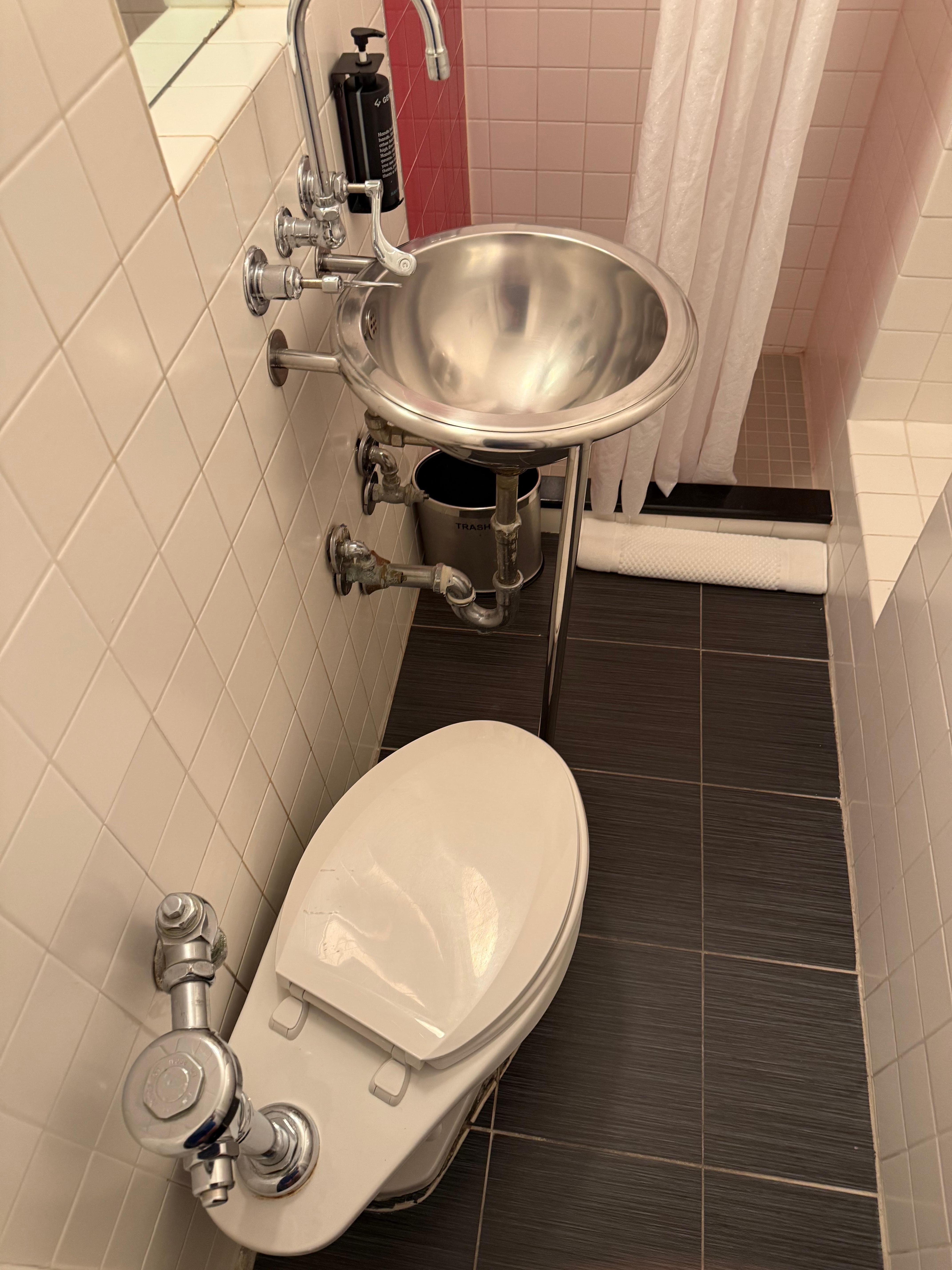 If you’ve ever wanted to spend $300 for a hotel room with a bathroom you’d have to sit side saddle on the toilet to use, this is the hotel for you. If you like standing sideways in the shower since it’s too small to stand the normal way in, this hotel is for you. If you like other people’s hair in your bathroom sink when you arrive, this hotel is for you. On top of those issues, the bathroom had 2 bath towels and that was it. No washcloths, no hand towels nothing. It also had 2 shampoo pumps in the shower and no body wash or conditioner. The bathroom was so small that I had to exit the bathroom to dry off after my shower. The only reason I’m giving this place 2 stars is because the location was prime for going to see shows on Broadway. If you’re looking for comfort, go somewhere else.