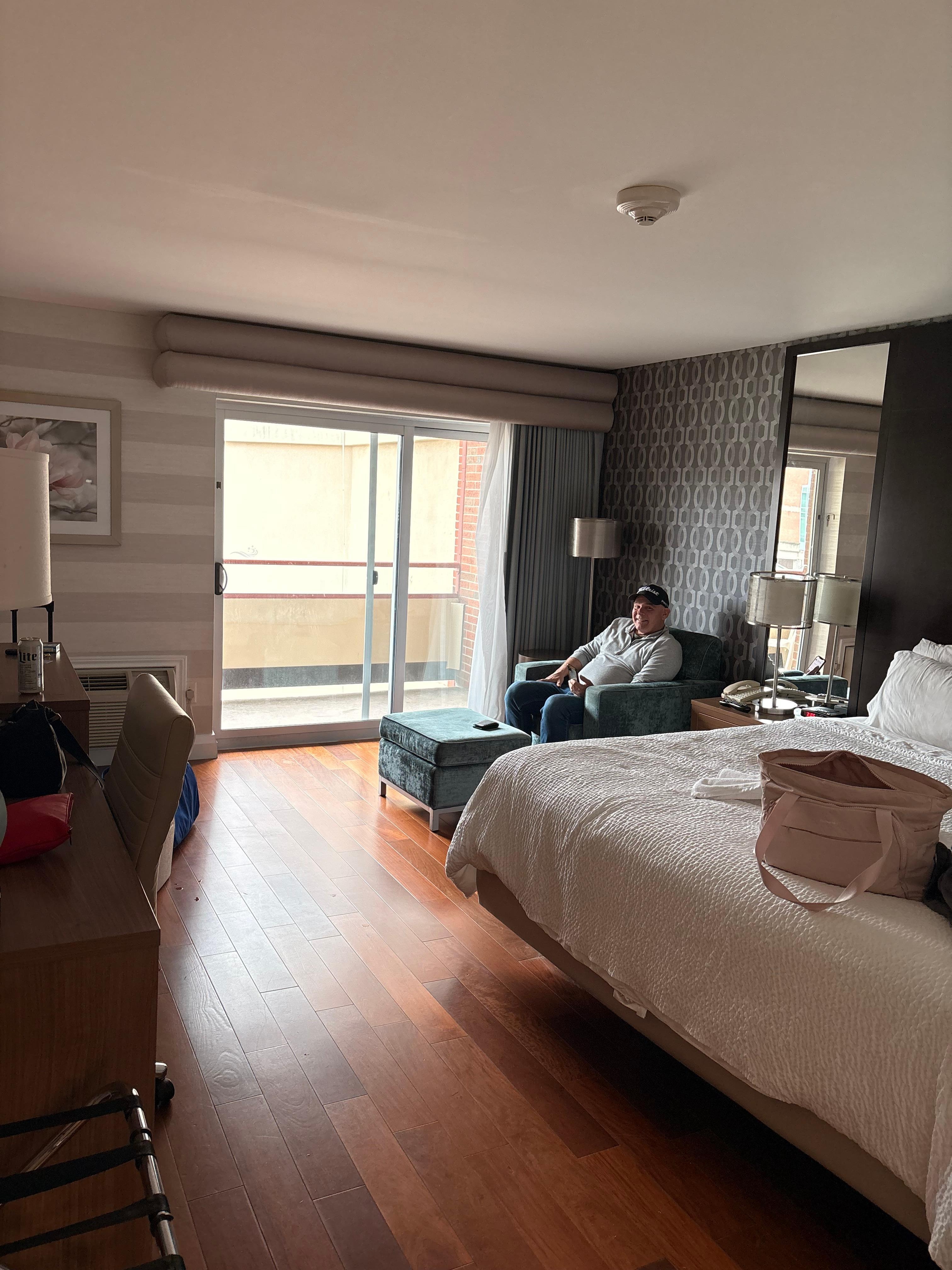 Fun indoor poolside area. Hot tub and sauna were nice. Suites were outdated and not very ‘hotel vibes’. Balcony looked rough. Water pressure was great! Needs a better renovation to look like a hotel and not apartment suites. Good location though.