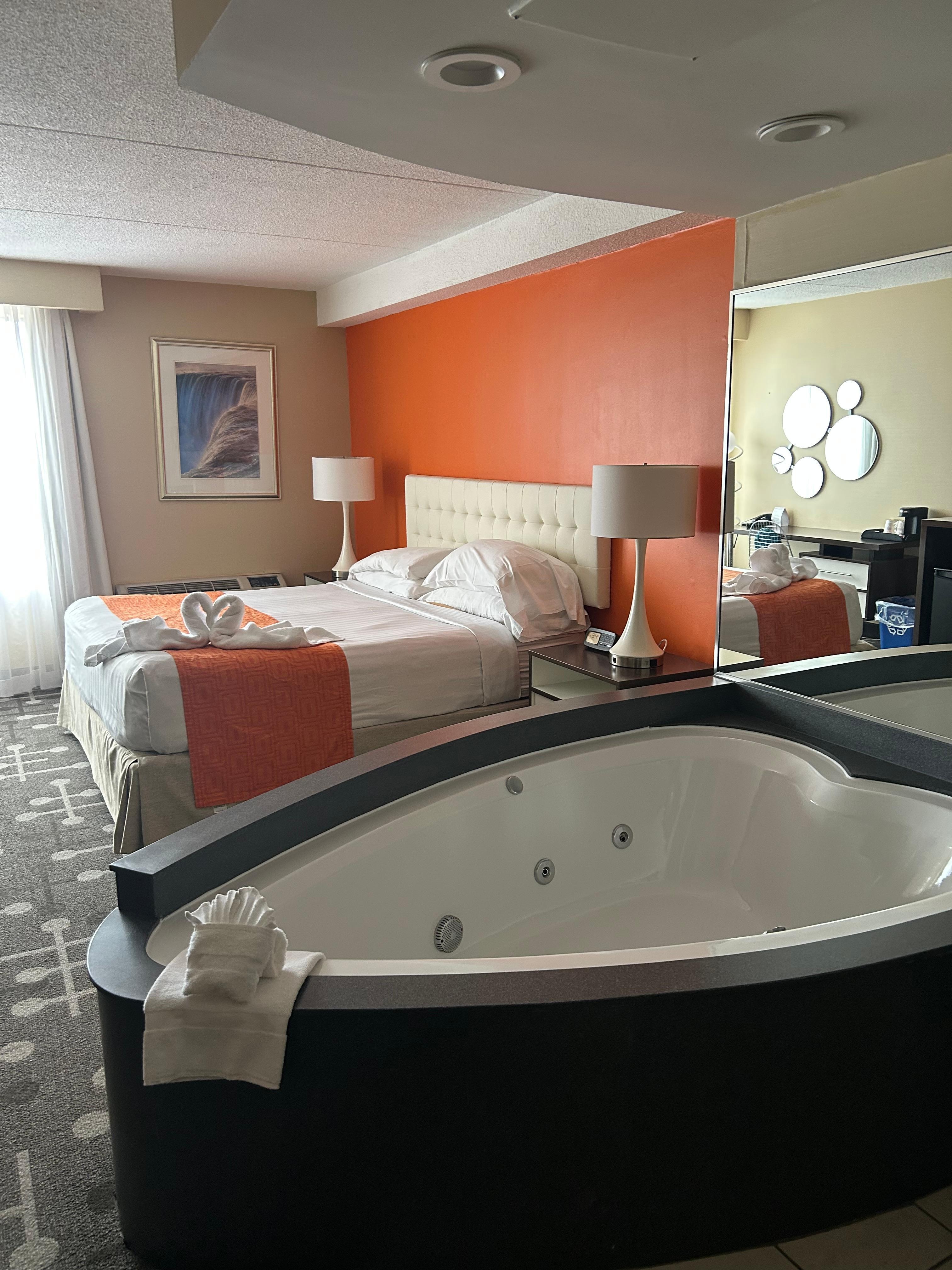Our room was clean. The staff are the real hidden gem from our stay. My daughter and I got a room that was probably for a honeymoon, we didn't use the jacuzzi. We had a blast. Gotta love a King Size bed. The kissing swan towel fold was on point. Even if we were not the inteded two people for the room.