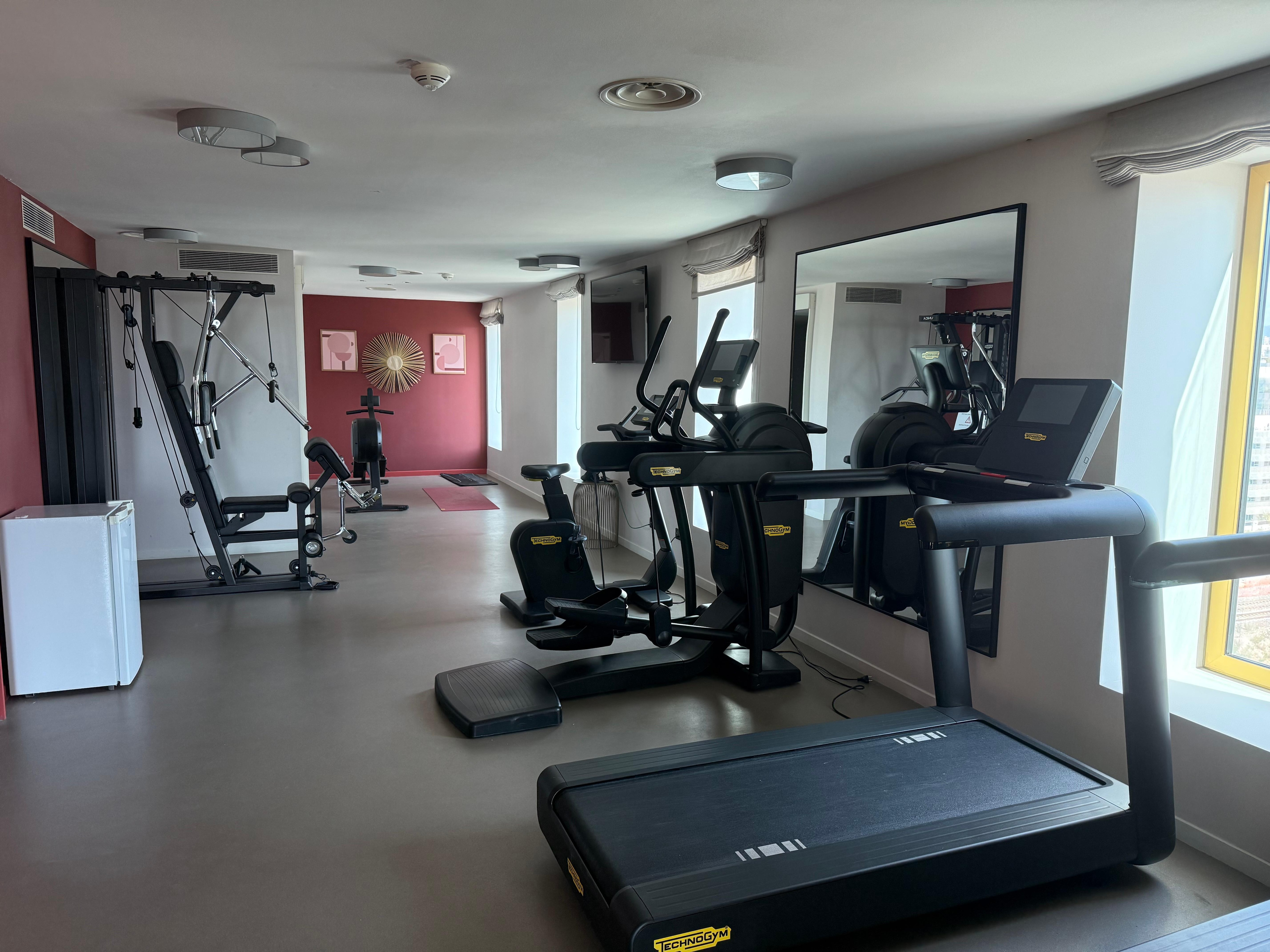 Breakfast was perfect. The hotel is very close to the airport which is a plus. They don’t have a hotel parking. There is a garage beneath the building which is not owned or controlled or operated by the hotel and is not easy to access. The gym was totally disappointing. The only power machine was broken and remained out of order for our entire stay. Our room on the second floor had only a small window and thus poorly lighted, just like a prison cell.