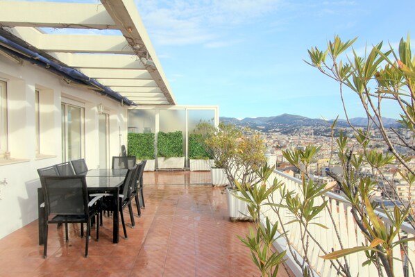 Sarete sopra i tetti di Nizza con una terrazza scoperta, in diretta comunione con la natura, il sole, il vento e i gabbiani.
