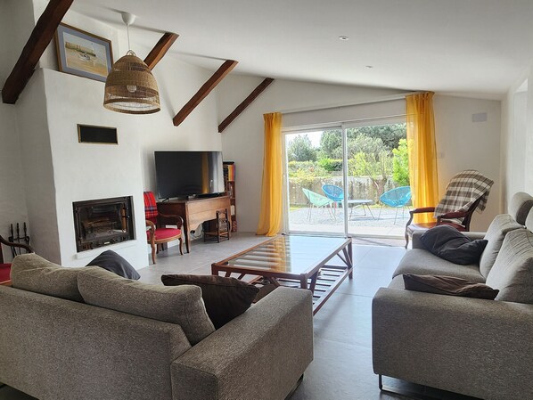 NOIRMOUTIER - L'HERBAUDIERE 550 m from Luzéronde beach (8-minute walk) - 1700 m from the port and shops (8-minute bike ride) - 50 m from the cycle paths Spacious, comfortable two-story house - approximately 135 m² - sleeps 10. The ground floor comprises a fully fitted and equipped kitchen, a dining room, a living room with a fireplace, a bedroom with a double bed (140 cm), a bedroom with a double bed (140 cm), a bedroom with a double bed (140 cm) and a bunk bed (90 cm) above, a shower room, and two toilets. Upstairs, there is a bedroom with a queen-size bed (160 cm) and a bunk bed (90 cm) with a television (the lower bunk is unusable), and a bathroom with a toilet. Amenities include a gas hob, oven, microwave, dishwasher, refrigerator with a small freezer compartment, washing machine, dryer, television, Wi-Fi, and a smart speaker. Enclosed garden with terrace, several areas with garden furniture, gas barbecue, 1 sun lounger, 4 deck chairs, armchairs. Parking on the property. Pets allowed upon approval by the owner. Cleaning fee of €200 available. Optional services not included, to be booked 1 month prior to arrival and subject to availability: Cleaning fee Bed linen rental (sheets and pillowcases) Bath linen rental (towels, sheets, and bath mat) Wi-Fi box rental Baby kit rental Please contact us as soon as possible. Security deposits payable no later than the day of arrival: €400 (damage/uncleaned property) + €50 (unemptied garbage/late departure).