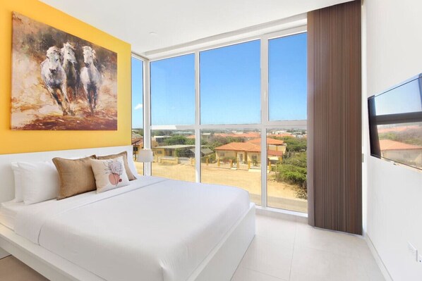Experience the best of Aruba with this amazing 2-bedroom condo in the brand new Aracari building, just 3 minutes from Palm Beach. Take advantage of the rooftop terrace with panoramic views of Palm Beach and the crystal-clear turquoise waters. Stay fit in the on-site gym, while enjoying the breathtaking views. Savor the Caribbean breeze while cooking up a storm on the rooftop BBQ grill. And when it`s time to explore, the stunning Arashi Beach and Boca Catalina are just a short 7-minute drive away