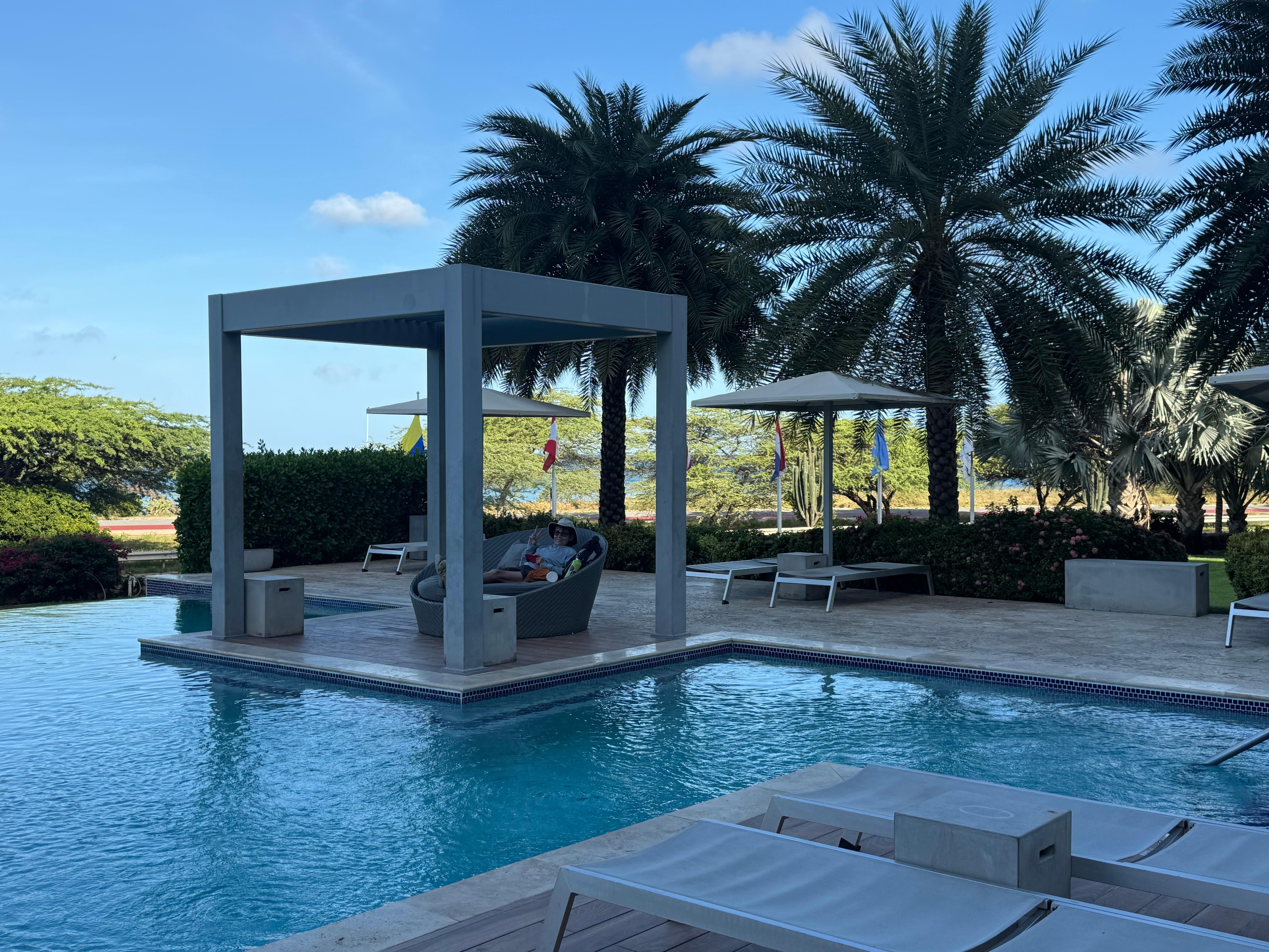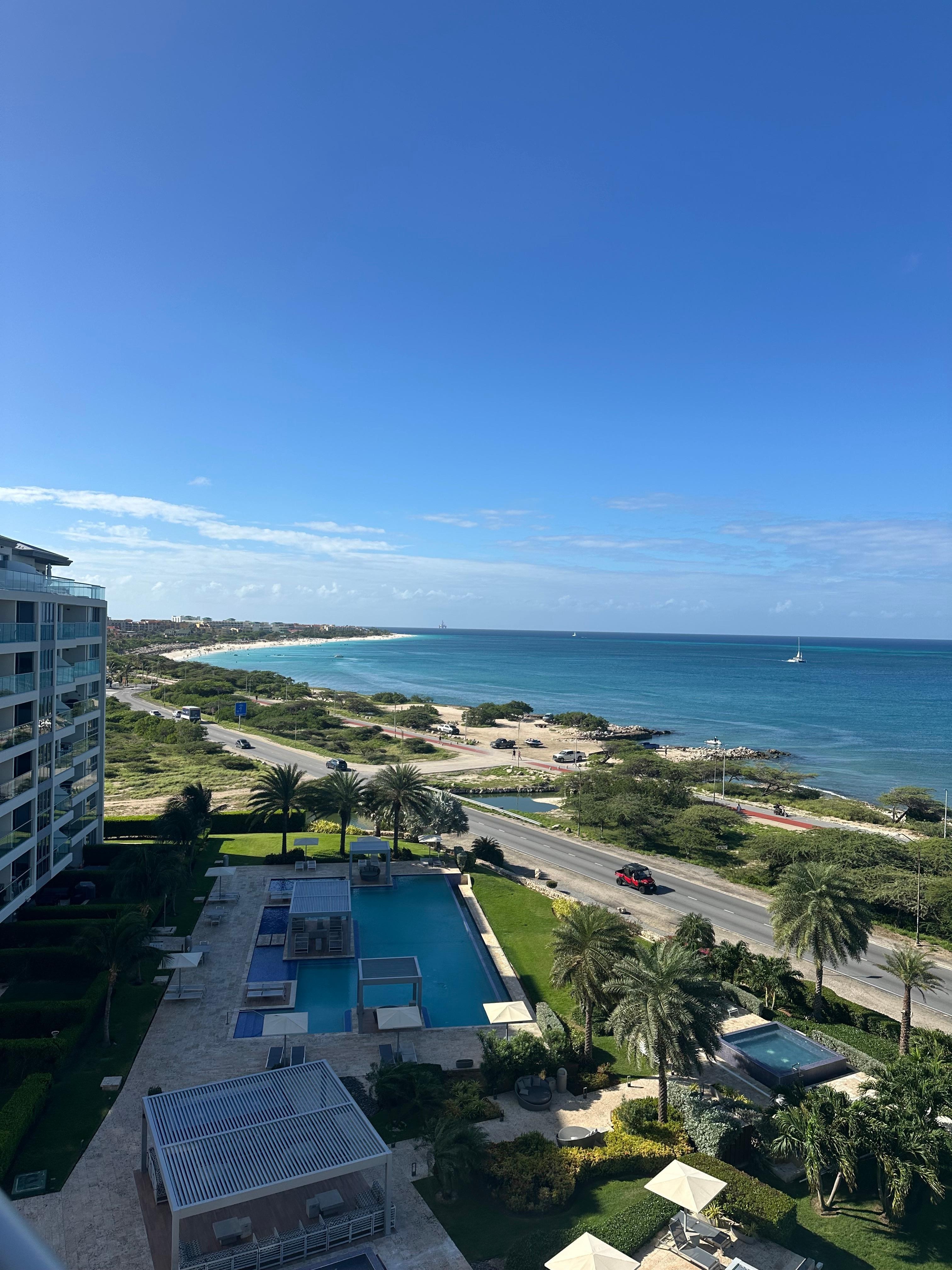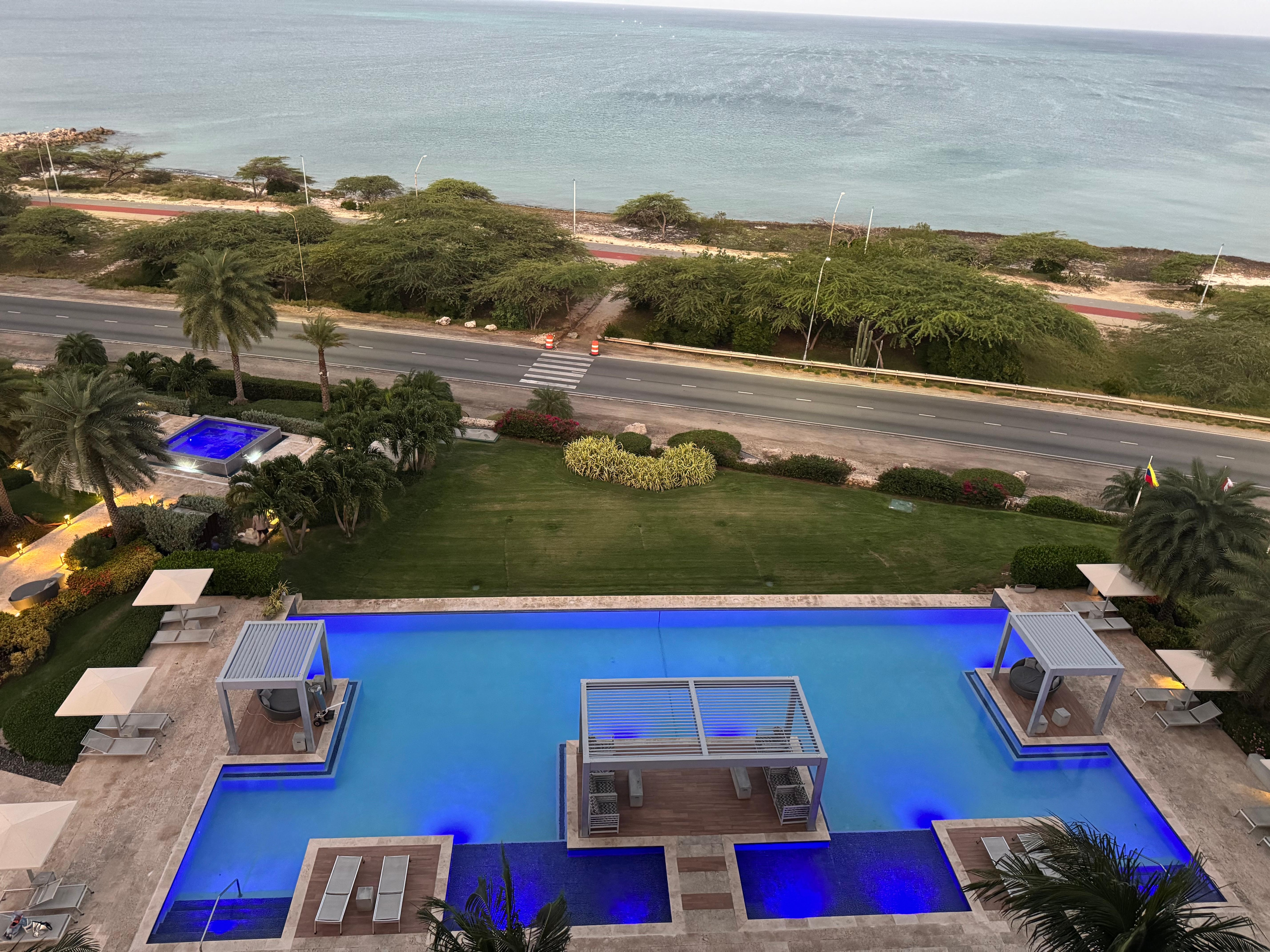 The condo has a beautiful view. Every morning, the pools were cleaned and maintained. Restaurant inside was good. Everyone was super friendly. This place is across the street from the path to Eagle Beach which is a short walk. We loved it was not super close to the busy areas, yet close to Eagle Beach and Palm Beach. We would stay again!