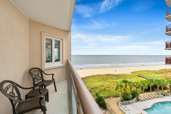 Step inside and youll see exactly why this North Myrtle Beach condo is a top pick! The fifth-floor condo features three bedrooms, three bathrooms, tasteful décor and plenty of room for up to 11 guests. Brew a cup of coffee in the fully equipped kitchen and bring it out to enjoy the sights and sounds from your oceanfront balcony. Beautiful tile flooring runs throughout the hallways, kitchen, dining room, living room and all bathrooms. Bedding includes a king in the master suite, two queens in one guest room and one queen in the other guest room. Bahama Sands provides guests fabulous aquatic luxuries that can be found in 5-Star tropical resorts around the world including an indoor pool, large outdoor pool, kiddie pool, outdoor lazy river, hot tub, sun decks, and fitness center, all just footsteps away from the beach. The highly acclaimed Crescent Beach section of North Myrtle Beach is within minutes from all the action on Main Street to the north, and renowned shopping and dining at Barefoot Landing to the south. The beach area also offers the more adventurous guest seasonal parasailing and banana boat rides, something exclusive to the Crescent Beach area.
