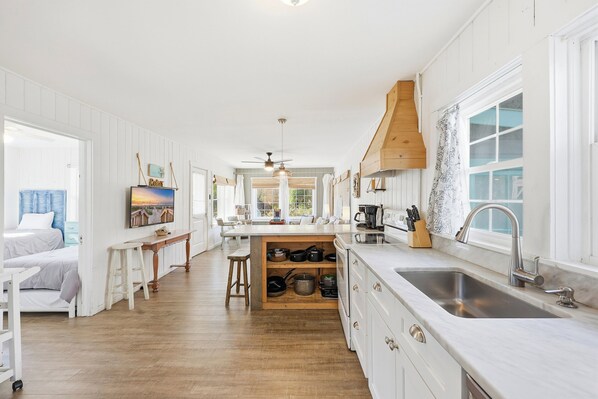 Alloggio con due camere da letto al primo piano con un bagno completo, (un ulteriore bagno completo aggiornato e annesso con ingresso esterno che fa pause vasino, mentre vi godete la piscina e il cortile, facile e veloce. Potresti semplicemente goderti una veloce doccia sulla spiaggia mentre un cocktail ti attende a bordo piscina! Cucina / soggiorno completi dotati di divano letto a una piazza e mezzo. Una camera da letto dispone di un letto king size, l'altra con due gemelli e un rotelle estraibile. Può ospitare fino a 7 comodamente. Lenzuola e asciugamani sono forniti con lavanderia in loco a vostra disposizione.