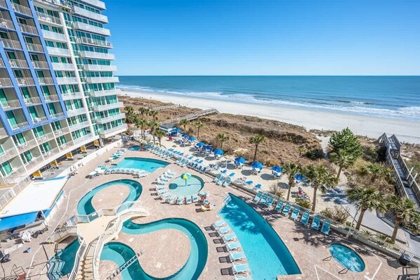 Close to Barefoot Landing and House of Blues, Alabama Theatre. A variety of restaurants, entertainment, shopping, and the new Duplin Winery. Perfect for couples or small families, it features a kitchen/living room and bedroom. Sleeps up to four people and is approximately 630 SF. The resort offers stellar amenities with spectacular views of the Atlantic Ocean. Oceanfront pool deck, indoor and outdoor pools, hot tubs and Lazy Rivers. Come and see what awaits you at this oceanfront resort unit.